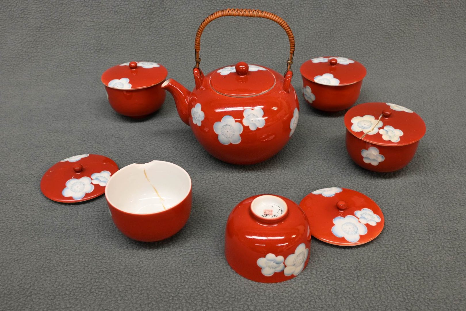 Hoping to return it to its rightful owners, the donors found no identifying information. The set arrived to the museum broken, but under the skilled hands of Naoko Fukumaru, it has been carefully restored.