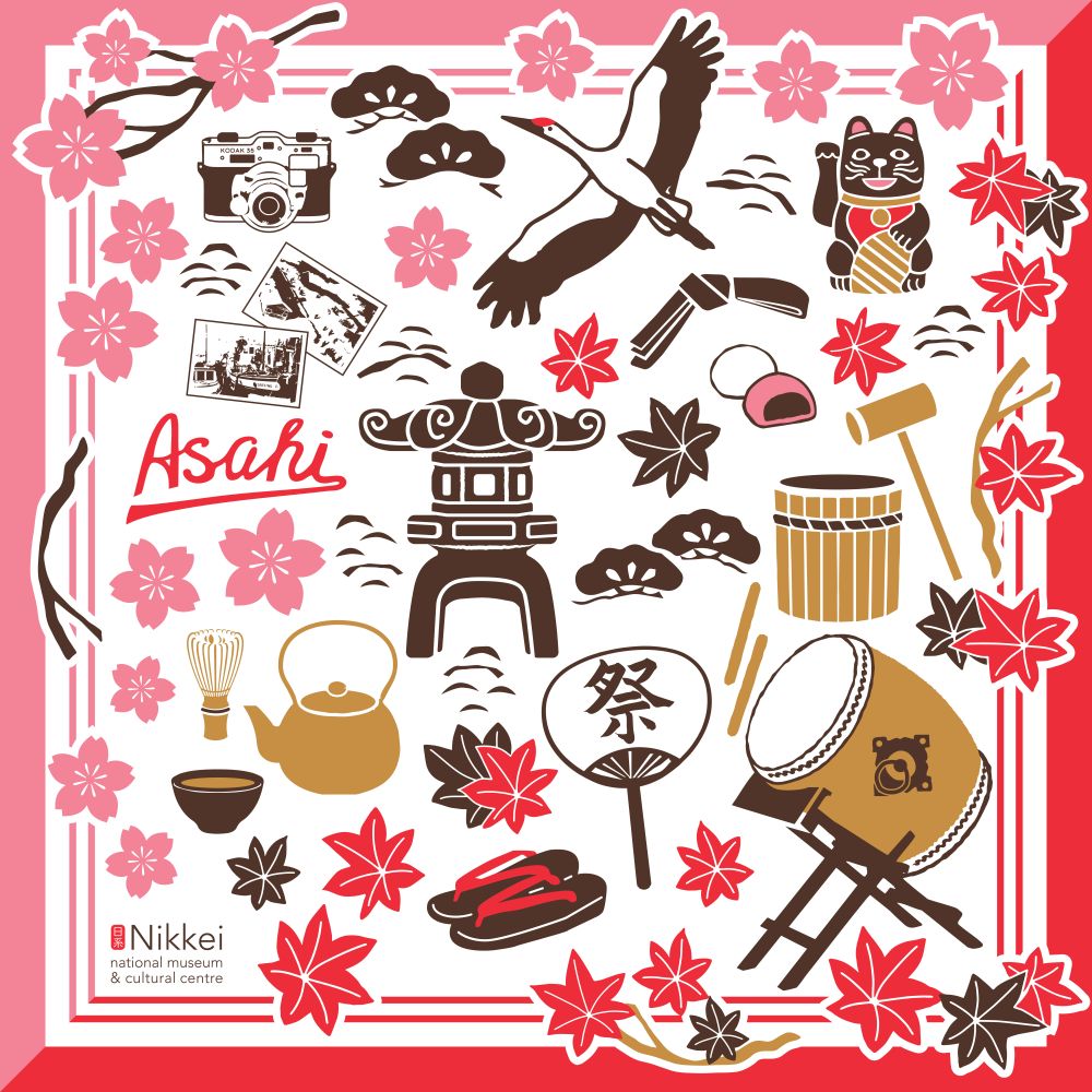 日系文化センター・博物館の25周年を記念してオリジナル風呂敷を制作しました。ミュージアムショップとオンラインショップでお買い求めできます。