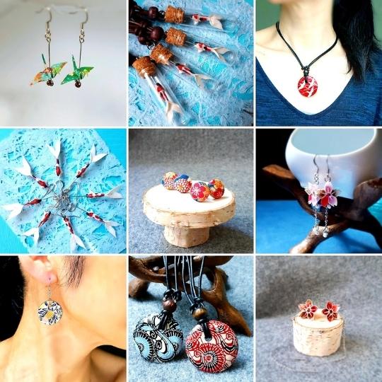 Chikayo Shiwa creates handmade Jewelry inspired by Japanese "Washi" papers.