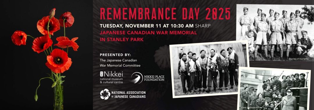 The Japanese Canadian War Memorial Committee (JCWMC) invites the public to attend its annual Remembrance Day Ceremony on Tuesday, November 11, 2025, at the Japanese Canadian War Memorial in Stanley Park.